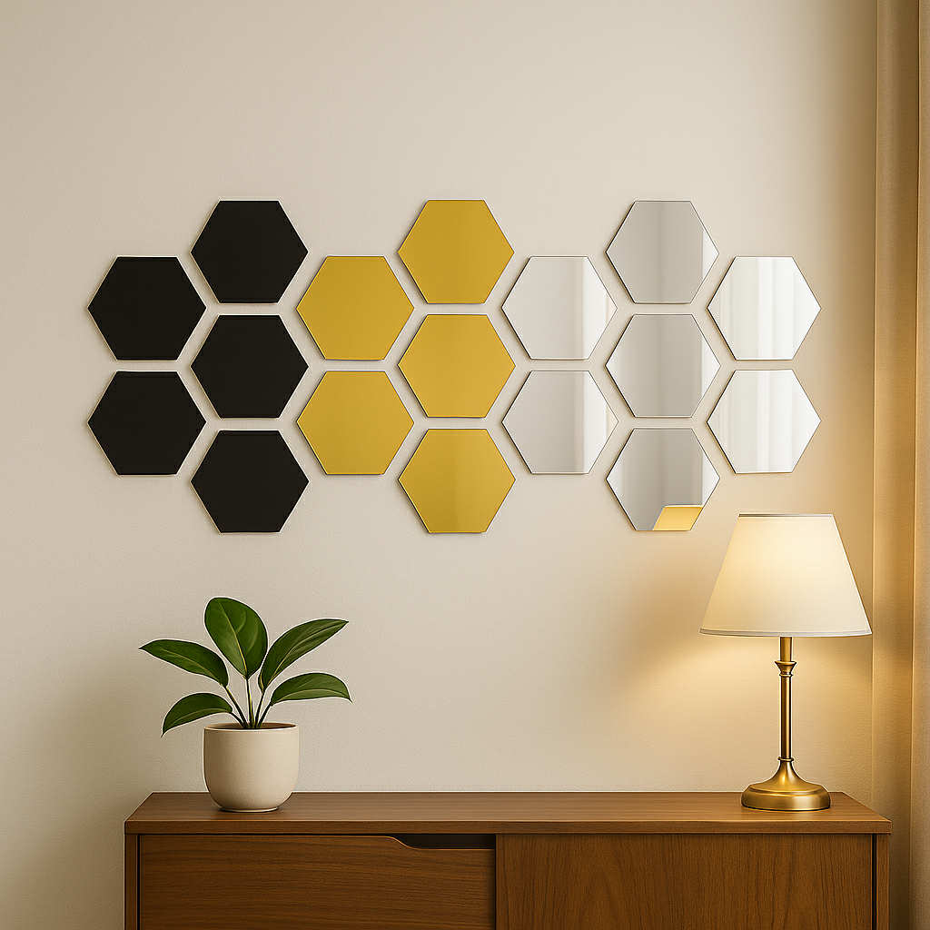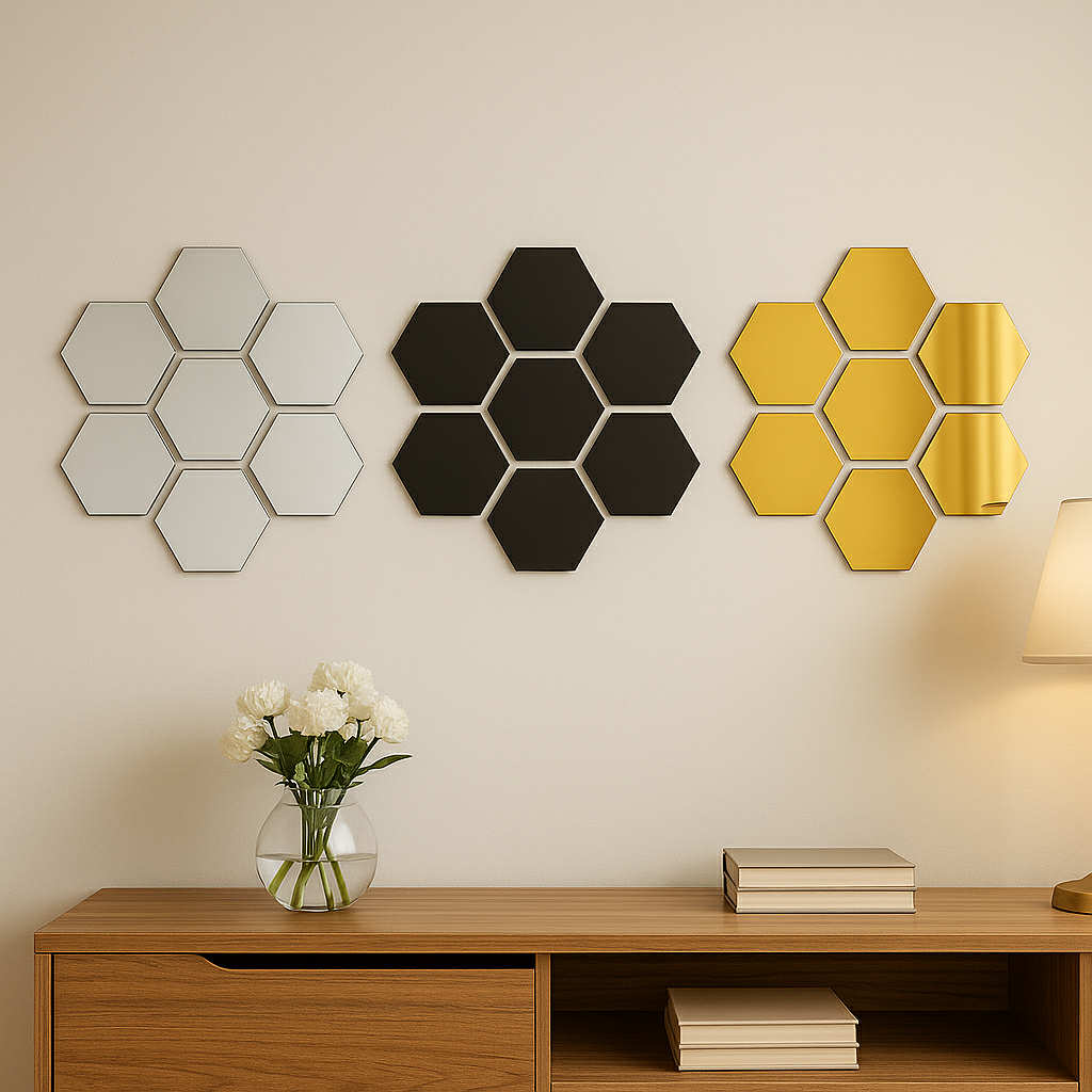 Each hexagon is lightweight, durable, and crafted from premium acrylic mirror material—so you just peel the backing, place it, and enjoy. The protective film ensures your mirrors arrive scratch-free and glossy. And the best part? You can reuse and rearrange them whenever you feel like a refresh.