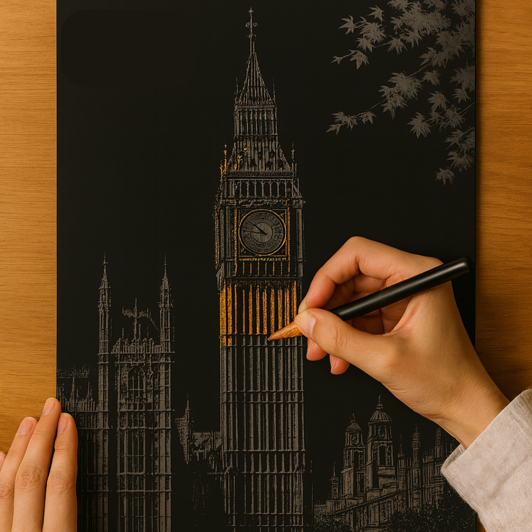 Hidden Hues isnāt just an art kitāitās a surprise waiting to happen. Beneath each matte black surface lies a world of vibrant color, waiting for you to uncover it. With just a bamboo pen in hand, every stroke reveals brilliant shades and intricate patterns. Simple, satisfying, and surprisingly addictive, it turns quiet moments into masterpieces.